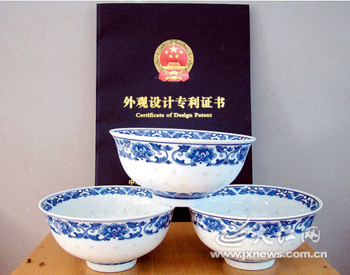 通過對全國多個城市兩年多的市場銷售情況測算,五寸青花玲瓏牡丹碗最受歡迎。2007年4月,福萬利公司將五寸青花玲瓏牡丹碗申報了專利,2008年2月27日獲國家知識產(chǎn)權(quán)局審查、通過,并正式公告。