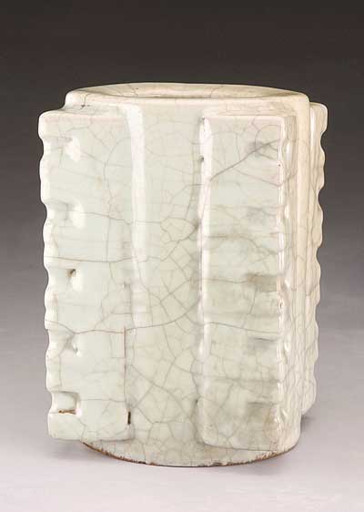“這件南宋官窯瓷器是只有在博物館中才能一窺的稀世珍寶,目前全世界類似的藏品僅有3件。”據(jù)中國嘉德負責人介紹,此次上拍的這件琮式瓶,外壁自下而上分為5節(jié),方形,直腹,圈足,造型端莊。南宋官窯青瓷,主要表現(xiàn)的不在于它的裝飾,而在它本身如玉泉般的、莊重的、典雅的、神秘的自然美。