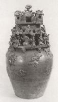 說(shuō) 明: 通體施青釉,呈青灰色.堆塑群有起有伏,形象細(xì)膩生動(dòng).