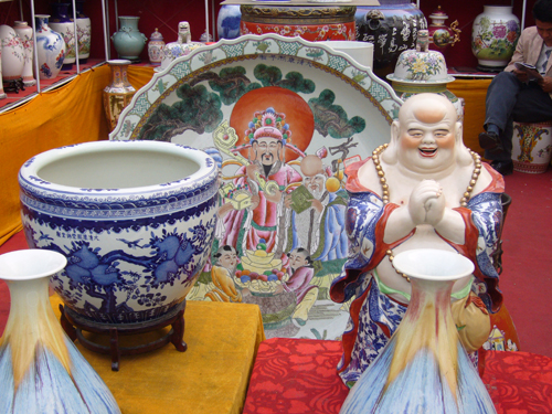 本次景德鎮(zhèn)瓷器展從4月1日開始為期15天。記者昨日在展會上看到, 近五十個景德鎮(zhèn)瓷器展位里,擺放著琳瑯滿目的花瓶、茶具、家居飾品等,小到一塊錢的玩偶,大到數(shù)十萬元的名家精品一應俱全,應有盡有。據(jù)了解此次展覽的瓷器共有幾百個品種,包括宮廷青花、高仿琺瑯彩、氣血狼紅、粉彩、雕塑瓷、手繪、釉瓷等。