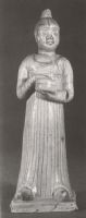 說 明: 胎灰白,釉青黃.神態(tài)自若.