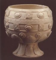 說 明: 胎色白,釉白色略微泛青.裝飾瑰麗,造型飽滿,氣勢雄偉,采用雕花、印花、貼花等技法,在唐代白瓷中少見.