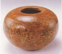 說 明: 內壁露白色胎,胎堅硬細密.外壁在淺褐色釉里透出深褐色木紋狀花紋清晰自然.工藝復雜,是唐代陶瓷的新產(chǎn)品,風格別具,色澤協(xié)調.