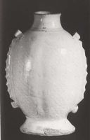 說(shuō) 明: 五代.胎色白而致密,釉色潔白微閃青,有小開(kāi)片和垂?jié){痕.此壺格調(diào)新穎,構(gòu)思巧妙,具有唐代定窯瓷器之風(fēng)格.