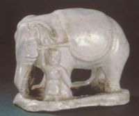 說 明: 五代.胎質(zhì)細(xì)白堅致釉潔白瑩潤,垂?jié){釉色微閃青.這是盛行于漢唐時期"百戲"中"象舞"的一種形象.