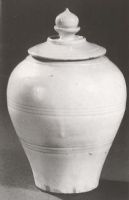 說 明: 胎質細白,釉色乳白有漿釉垂痕.芒口毛足.采用堆貼和劃花技法,紋飾簡練.造型俊秀.