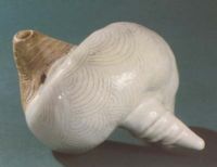 說 明: 胎白厚重,釉色白中泛青,尾部無釉.器型逼真,獨具匠心.是北宋定窯承做的特種工藝品.