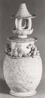 說 明: 俗稱魂瓶.胎質(zhì)細膩.施青白釉.造型新穎別致,紋樣生動優(yōu)美.