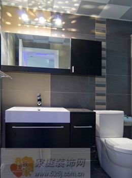 浴室采用冷色調(diào)為主,墻頂?shù)匿X扣板與廚房采用一樣的材質(zhì)與色系這使空間風格更顯得統(tǒng)一性。墻壁采用的青石磚類似的來裝飾,米色與灰色搭配在一起,現(xiàn)代氣息十足(這個磚據(jù)說材質(zhì)很硬的,施工起來很不方便,但施工后效果也是可見的)。黑色的柜子與客廳里的家具色是一樣的,黑色的儲蓄柜顯得很大氣,稍加觀察就可發(fā)現(xiàn)柜子的另一個秘密哦,拉開鏡子里面是個很大的儲存空間,以后可以把瓶瓶罐罐都收納在里面很實用,這也是設計師的用心之處。值得一提的是浴室里的三盞節(jié)能燈很亮很玄,結合現(xiàn)代風為一體的完美效果。
