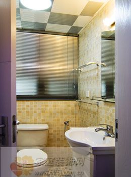 這里原先是個(gè)小陽臺,但鄭夫婦考慮到可能以后會有保姆所就把小陽臺變成了小浴室。由于空間只有1.5平方米采用一般的地磚容易滑,而選用馬賽克則是再適合不過了,它不僅鋪設(shè)后美觀而且還有防滑的作用。小空間使用暖色馬賽克是首選,暖黃色使空間顯得更具有親切感。為襯托現(xiàn)代主題的裝修風(fēng)格在窗簾上設(shè)計(jì)師采用了銀色百頁簾。在1.5平方米的浴室里安裝普通的門會打不開,所以經(jīng)過考慮之后安裝了折門(這樣的門優(yōu)點(diǎn)是節(jié)約空間,缺點(diǎn)是關(guān)門比較麻煩而且容易使門角損壞),但總的來說浴室給人的感覺既溫馨又不失現(xiàn)代感。