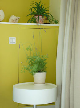 細(xì)看臥室里的角落處,你還會(huì)發(fā)現(xiàn)那可愛(ài)的盆栽哦,在臥室里放置些綠色的植物會(huì)使臥室看起來(lái)更加活潑可愛(ài)。
