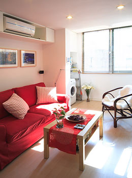 客廳是屬于迷你型的,一張紅色的沙發(fā)顯得喜氣洋洋,淺色格子的靠枕,給客廳多了份田園氣息,木色的臺(tái)幾與淺色的地板相呼應(yīng),整體感覺(jué)很協(xié)調(diào)。把兩個(gè)陽(yáng)臺(tái)打通,大大的窗戶裝上百葉簾,把老公房采光不足的問(wèn)題解決了。 總的來(lái)說(shuō)本套房子在設(shè)計(jì)和選材上還是頗費(fèi)苦心的,尤其是在老公房的空間和采光上設(shè)計(jì)的非常到位。室內(nèi)整體設(shè)計(jì)簡(jiǎn)單而時(shí)尚,空間儲(chǔ)藏性強(qiáng)相信有很多地方值得正在準(zhǔn)備裝修的人學(xué)習(xí)。