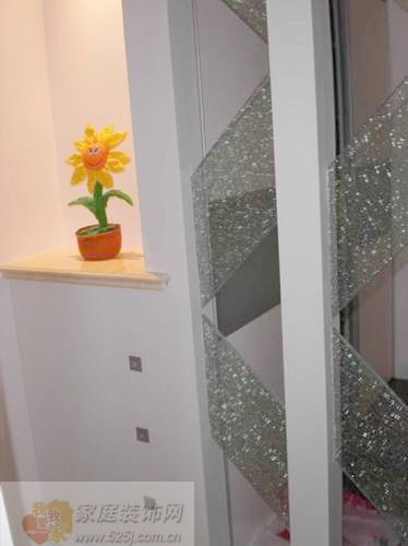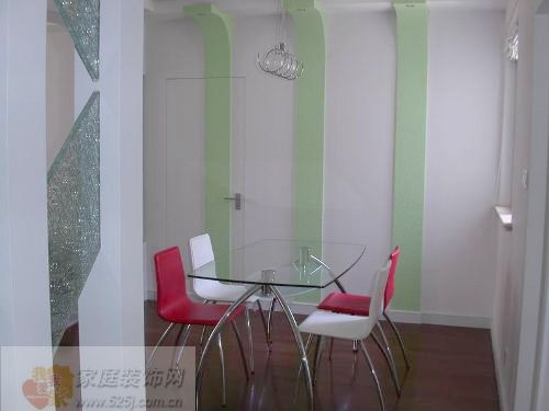 入門口處儲(chǔ)藏室墻壁的加長,直接制造出了一塊玄關(guān)的資源,既可以當(dāng)作鞋箱使用,又可以營造出別樣的空間,裂紋玻璃的使用,正好和客廳內(nèi)的玻璃柱子形成呼應(yīng)。在餐廳的墻面設(shè)計(jì)上面,同樣也是方柱形狀的墻面造型,這樣,玄關(guān)支撐玻璃的方柱、餐廳的墻面凸柱,還有客廳的玻璃方柱,都成為一個(gè)在不同空間內(nèi)有機(jī)聯(lián)系的主體。