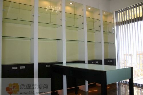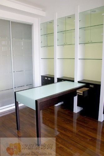 書房作為開門后見到的的第一個(gè)房間,為了節(jié)約空間,門是做成了移門的樣式,既美觀,又符合了房間現(xiàn)代簡潔的裝修風(fēng)格,更寶貴的是玻璃材質(zhì)和客廳的墻壁相呼應(yīng),有個(gè)通透朦朧的效果。即便是書房的陽臺(tái),也是玻璃的移門,這樣前后就相互對(duì)稱了。