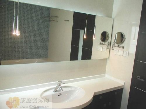 衛(wèi)浴間在一般人的眼里始終都是冰冷的感覺,特別如果為了整體風格也是冷靜、簡潔線條的設計的話,衛(wèi)浴區(qū)域的冷淡更為明顯。但是棱角分明也不失一種先鋒派風格,在干區(qū),寬屏的大鏡子讓空間更加寬敞,濕區(qū)浴缸前面做了樓梯踏步,有線條的布置使小空間有了層次感,也更顯人性化。