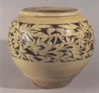 圖片名稱: 赤峰窯白釉剔花牡丹紋罐