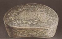 說 明: 畫面之外的空白處用鐵工具印戳珍珠地.紋樣生動細(xì)膩,構(gòu)圖清新活潑,具有強烈的民間生活氣息.