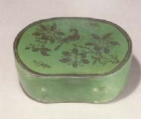 說(shuō) 明: 胎黃白較硬,釉深綠潤(rùn)澤,底無(wú)釉.筆法流暢,尤其鵲腹的一筆勾勒得惟妙惟肖.從枕面釉的光澤被磨損的情況看,為實(shí)用器.