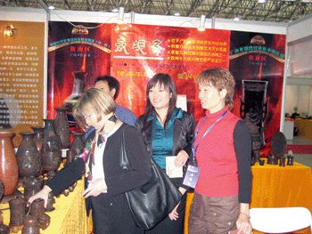 4月10日,聯(lián)合國教科文組織官員在南昌舉行的第43屆“全國工藝品、旅游紀(jì)念品暨家居用品交易會(huì)”欽州展廳參觀欽州坭興陶工藝品。欽州市有13件坭興精品參評此屆交易會(huì),同時(shí)該市還有100多件作品參展。