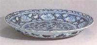 說 明: 米黃色胎,足內(nèi)無釉,底心有旋紋.青花色彩濃艷,藍白相間,圖案清晰明朗.器形碩大,制作精工.