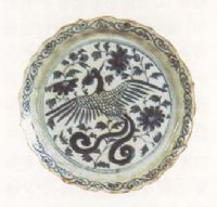 說 明: 青花濃處呈藍黑色,白釉厚處閃青色.紋飾簡樸豪放,器形胎體較薄,是元代青花較精美之作.