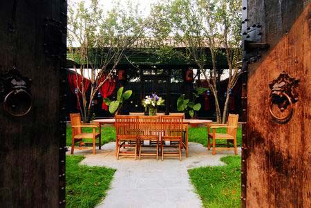 從玻璃長(zhǎng)廊步入側(cè)房,是洗衣房和清潔室,盡頭的小房間是儲(chǔ)酒室,出儲(chǔ)酒室便過(guò)渡到第二進(jìn)院落,這是博龍先生最喜歡的院子。院子里綠草茵茵,中央鋪一張長(zhǎng)桌,再擺上幾把木椅,白天有陽(yáng)光有青草,能嗅到淡淡的白果樹(shù)的清香,是天然的Party場(chǎng)所,晚上喧鬧散去,品一杯紅酒看幾點(diǎn)燭光,很愜意很真實(shí)。