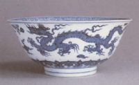 說 明: 胎薄體輕,釉面瑩潤,以蘇麻離青料繪云龍紋,龍?bào)w渾圓,雄健有力.無款識.
