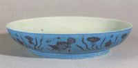 圖片名稱: 孔雀綠釉青花魚藻紋盤