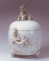 說(shuō) 明: 胎體厚重,通體施釉,色白釉厚.形制特殊,雕塑螭獸雄威,栩栩如生.