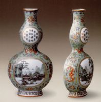 說 明: 此種瓶在清代檔案中被稱作轎瓶,是掛在轎內的裝飾物,亦可懸掛于齋堂墻壁上作插花之用,故又稱"壁瓶".始燒于明代萬歷時,清代曾大量生產,以乾隆時為多見,品種亦最多.