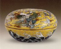 圖片名稱: 黃地粉彩龍鳳紋印盒