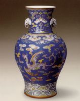 圖片名稱: 藍(lán)地粉彩云鳳紋象耳瓶