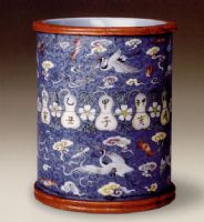 圖片名稱: 天藍地粉彩云鶴蝙蝠紋干支旋轉(zhuǎn)筆筒