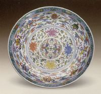 說 明: 此器紋飾繁而不亂,胎質(zhì)細白,釉汁純凈.充分體現(xiàn)出景德鎮(zhèn)官窯的制瓷水平.