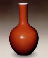 說 明: 此瓶的造型模擬傳統(tǒng)的天球瓶,但比例縮小,既保留天球瓶的雄偉氣勢,又給人精巧新穎之感.霽紅釉呈色濃艷,與規(guī)整優(yōu)美的造型結(jié)合得天衣無縫,顯示出官窯瓷器規(guī)整而有氣勢的風(fēng)格.