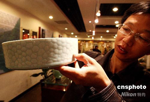 4月25,中國龍泉青瓷珍品展在北京合璧興陶瓷藝術館舉行,龍泉青瓷以獨創(chuàng)的粉青、梅子青釉色而著稱,龍泉哥窯有“金絲鐵線”之美稱,列為宋代五大名窯之一;而龍泉弟窯則以晶瑩潤澤的青釉聞名天下,被譽為“青瓷之花”。是次展覽是由中國陶瓷工業(yè)協(xié)會及浙江省龍泉市政府主辦,毛正聰、徐定昌、陳愛明等十余位當代大師紛紛創(chuàng)作并燒制青瓷作品。圖為珍品《期盼》則以奧運比賽場館國家游泳中心水的立方為設計藍本,內部釉層飽滿晶瑩宛如水波,外部配以水分子外形的紋飾,將浙江龍泉的傳統(tǒng)青瓷文化與現(xiàn)代奧運文化相結合,形成了人們對水的立方的記憶載體,表達了對奧運的向往和期盼,完全契合北京奧運會綠色、科技、人文的三大核心理念。