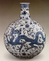 說 明: 此壺胎白釉潤,造型雋秀優(yōu)雅,畫工精細,是永樂青花的杰出代表.