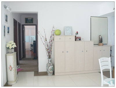 進(jìn)門兩個(gè)景泰藍(lán)花瓶,淺黃拉窗那里是工作露臺(tái)。窗前是石化樹。爺爺奶奶的相片,爸爸那個(gè)不舍得扔的八仙過;ㄆ俊