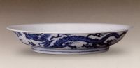 說 明: 此盤青花呈色濃艷,釉質(zhì)滋潤.里心繪云紋,外繪雙龍趕珠.龍紋為永樂時期常見紋飾之一.永樂時期一種以海水為地、上繪龍紋的裝飾方法為后代所繼承.