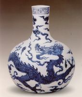 說 明: 天球瓶創(chuàng)燒于明代永樂年間,但永樂天球瓶均不署款識,宣德天球瓶有的署款,有的不署款,其裝飾題材有青花云龍、青花海水白龍等.