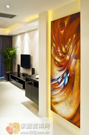 走進(jìn)室內(nèi),就深深的被玄關(guān)所吸引了。整個(gè)玄關(guān)空間現(xiàn)代簡約而不簡單的設(shè)計(jì),把現(xiàn)代風(fēng)格與品質(zhì)生活表現(xiàn)的淋漓盡致。玄關(guān)采用嵌入處理,在里面做上淡黃色的燈帶,整體感覺很溫馨。淡黃色又與墻壁上的抽象畫色系相呼應(yīng),把現(xiàn)代帶有個(gè)性、時(shí)尚的氣質(zhì)表現(xiàn)的很到位。玄關(guān)的設(shè)計(jì)把整個(gè)室內(nèi)空間風(fēng)格就這樣表現(xiàn)出來了。
