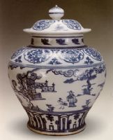 說 明: 造型端莊,裝飾題材別有情趣.釉色青翠光潤(rùn),反映了明代中期青花瓷器制作工藝的水平和特點(diǎn).
