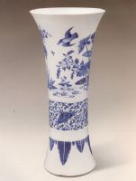 說 明: 此觚青花色調明快,刻畫隨意生動.口沿有暗花裝飾.