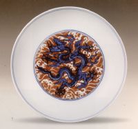 圖片名稱: 青花紅彩海濤龍紋盤