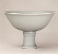 說 明: 此碗造型與署永樂年款的甜白釉或鮮紅釉高足碗相同,輕盈秀美,時(shí)代特征鮮明.