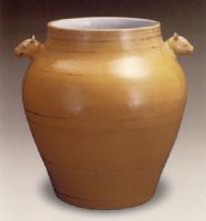 說(shuō) 明: 明代黃釉瓷造型以盤(pán)、碗居多,罐較少;黃釉罐是當(dāng)時(shí)宮廷祭祀用器,黃釉金彩罐是弘治朝獨(dú)有。