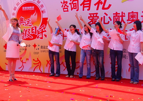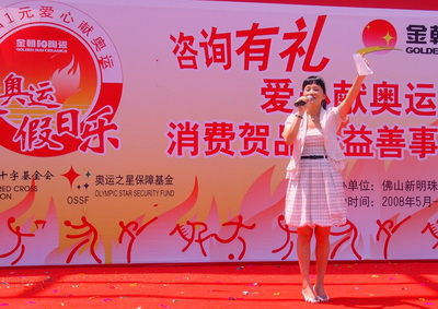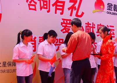 金朝陽品牌副總經(jīng)理文藝和工作小組作現(xiàn)場奧運之星基金會公益活動宣言