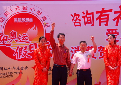 “迎奧運 假日樂”金朝陽1元愛心獻(xiàn)奧運公益活動開啟儀式,與福州圣火傳遞時間同步 ,由搜狐焦點家居網(wǎng)作現(xiàn)場獨家報道.