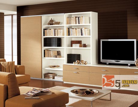簡約的大屏幕液晶電視非常容易搭配裝修風(fēng)格現(xiàn)代的房間。不過,大面積的黑色屏幕和閃亮的機(jī)身容易讓人一進(jìn)入房間就將視線焦點落在電視機(jī)身上,而作為一個開放的起居空間,應(yīng)該盡量避免這種過于單調(diào)突兀的視覺效果。