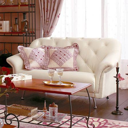 粉與淡紫,小女生的最愛,米白的沙發(fā)更顯得時尚小資。